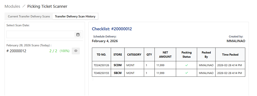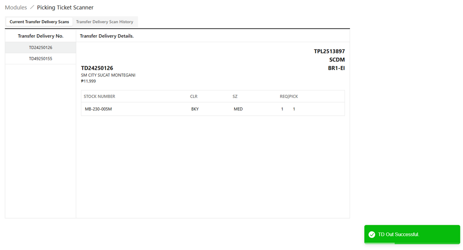 Transfer Delivery and Picking Ticket Scanner (User Guide)